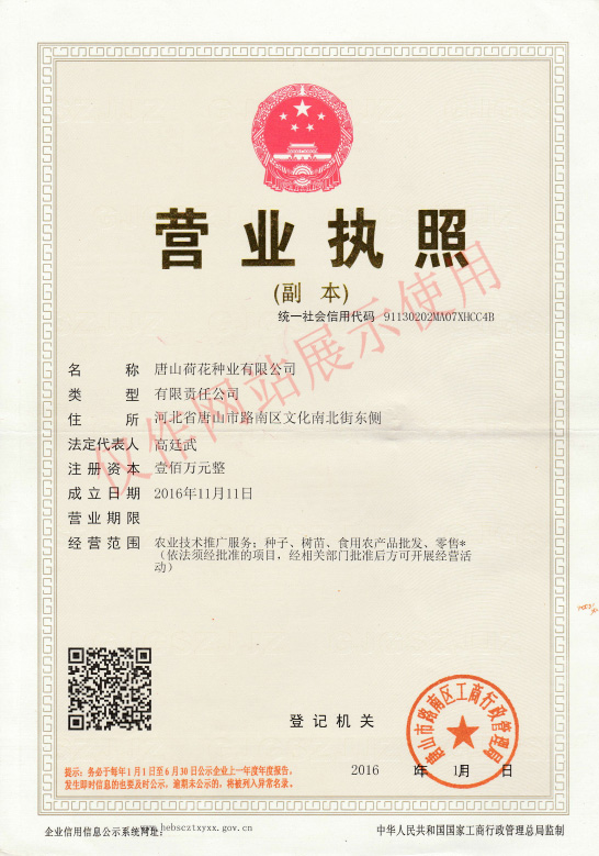 唐山荷花種業有限公司始創于1984年,一直秉承“科技為先,誠信為本”的發展指導戰略,注冊商標“荷花”牌,經過三十多年的發展,建立了從親本選育、試驗示范、生產檢驗、精選加工、推廣銷售及農業技術咨詢一體化的經營體系,目前擁有試驗基地、繁育基地、制種基地、及規模化種子冷貯藏庫,完善了由科研、檢驗、生產、銷售各個配套環節。荷花牌系列種子正是我們在堅持“誠信、品質、開拓、創新”的企業精神下打造的種子品牌,如今,在全國已形成強勢品牌效應,是一個值得信賴與具有一定影響力的種子品牌,在全國廣大用戶中贏得了良好的口碑和信譽... ...